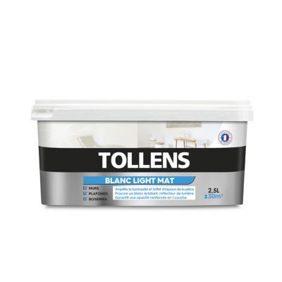 Peinture Tollens Light murs, plafonds et bois blanc mat 2,5L | Castorama